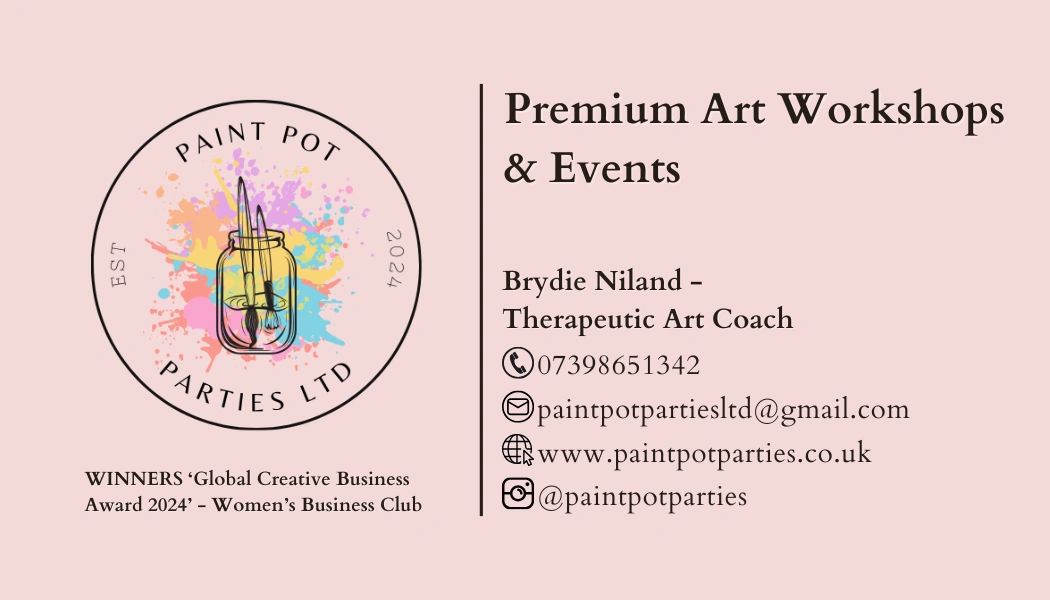 The team here at Paint Pot Parties has grown! Meaning we can expand our offer and now have regular monthly pop-up painting workshops in various locations - that means more PAINT & PIZZA at Cattivo, Cirencester, monthly PAINT & SIP NIGHTS at a number of venues & a all new PAINT & PATTIE NIGHT at Airs & Grace's, Cheltenham- click the BOOK NOW button for all event dates and information.